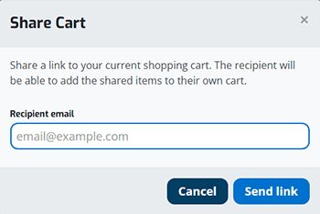 - Enter the email of the person you would like to share the cart with and click the “Send Link” button.